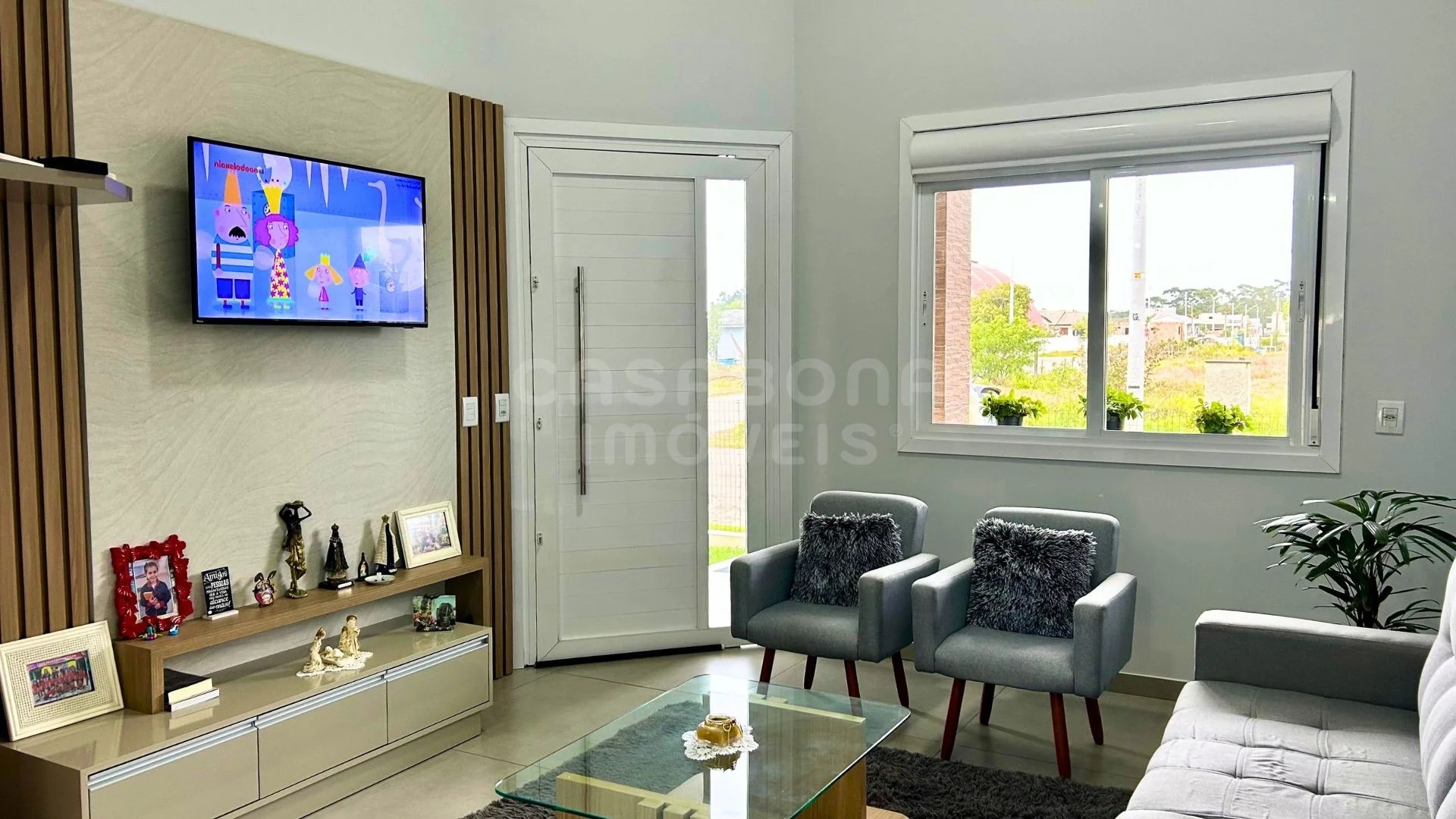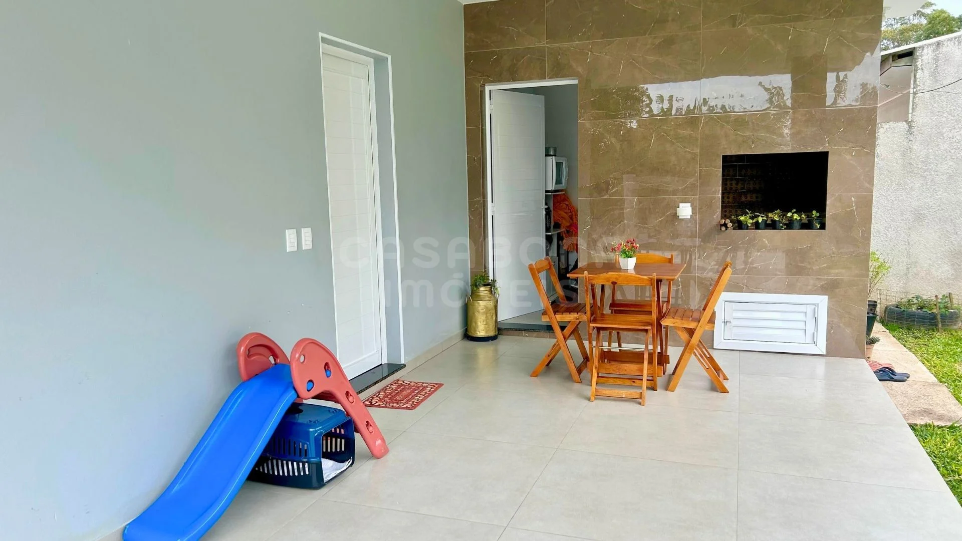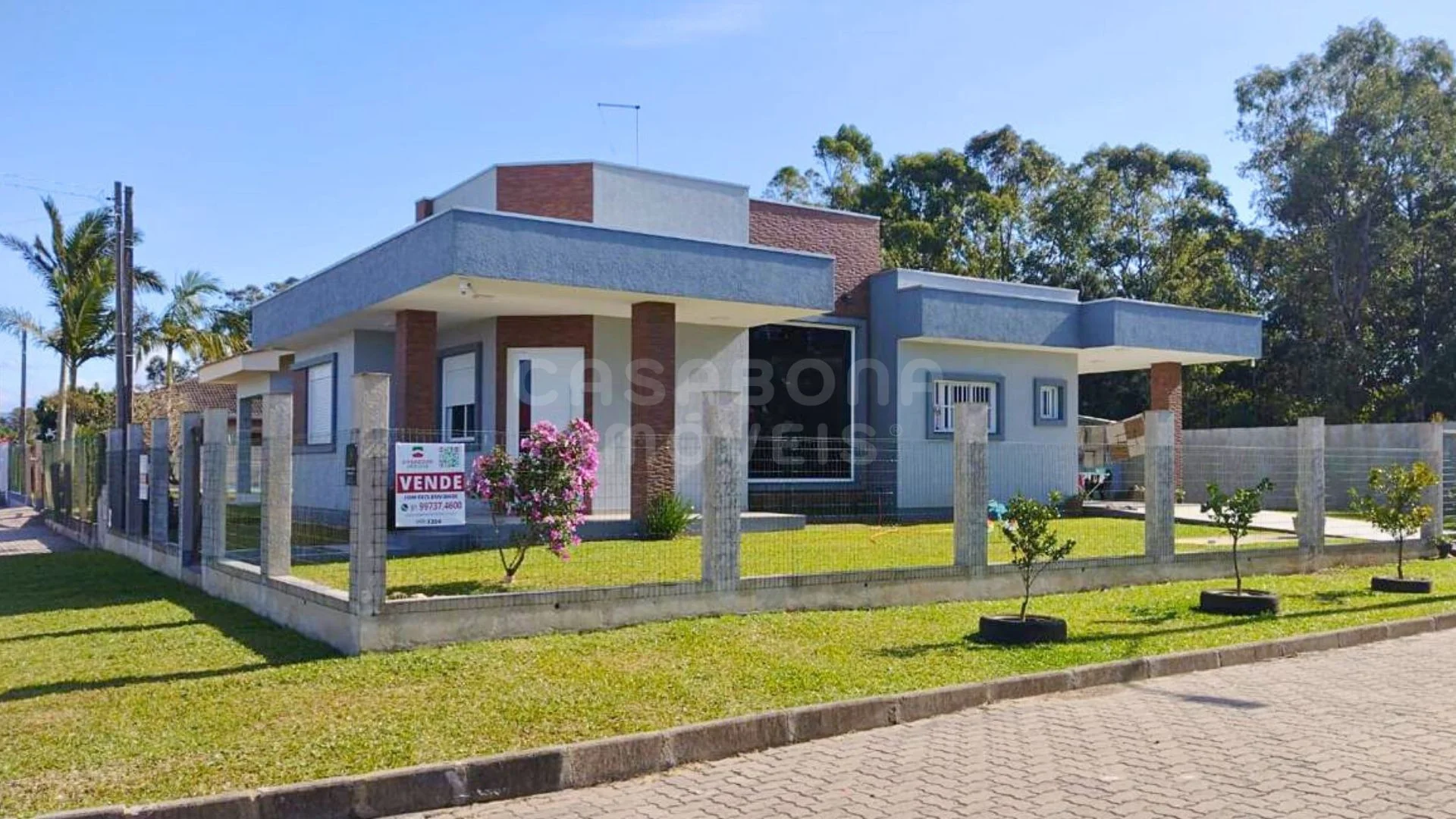 A casa conta com ambientes amplos e bem planejados: sala de estar e jantar integradas, cozinha com espaço gourmet, 3 dormitórios (conforme estrutura), área de serviço, banheiro social, garagem e depósito. O acabamento é de alto padrão, com piso porcelanato, esquadrias em alumínio, laje de concreto e excelente iluminação natural com posição solar Sul/Leste.