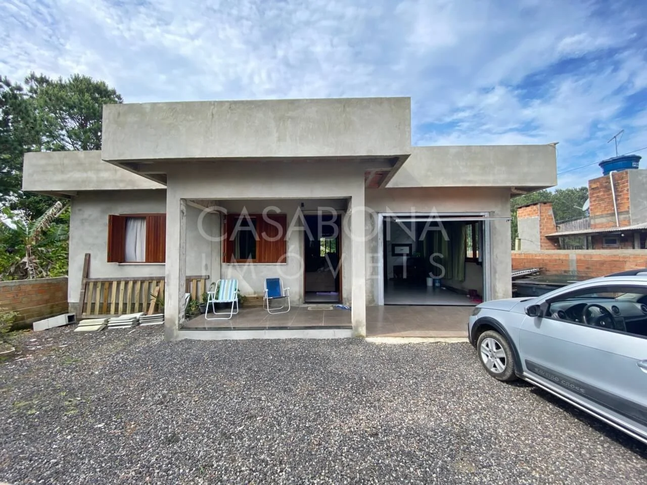 A casa possui dois dormitórios, sendo uma suíte para garantir sua privacidade e conforto. Além disso, há um banheiro social para maior comodidade dos moradores e visitantes. A cozinha é espaçosa e funcional, integrada à sala de estar/jantar, proporcionando momentos especiais em família.