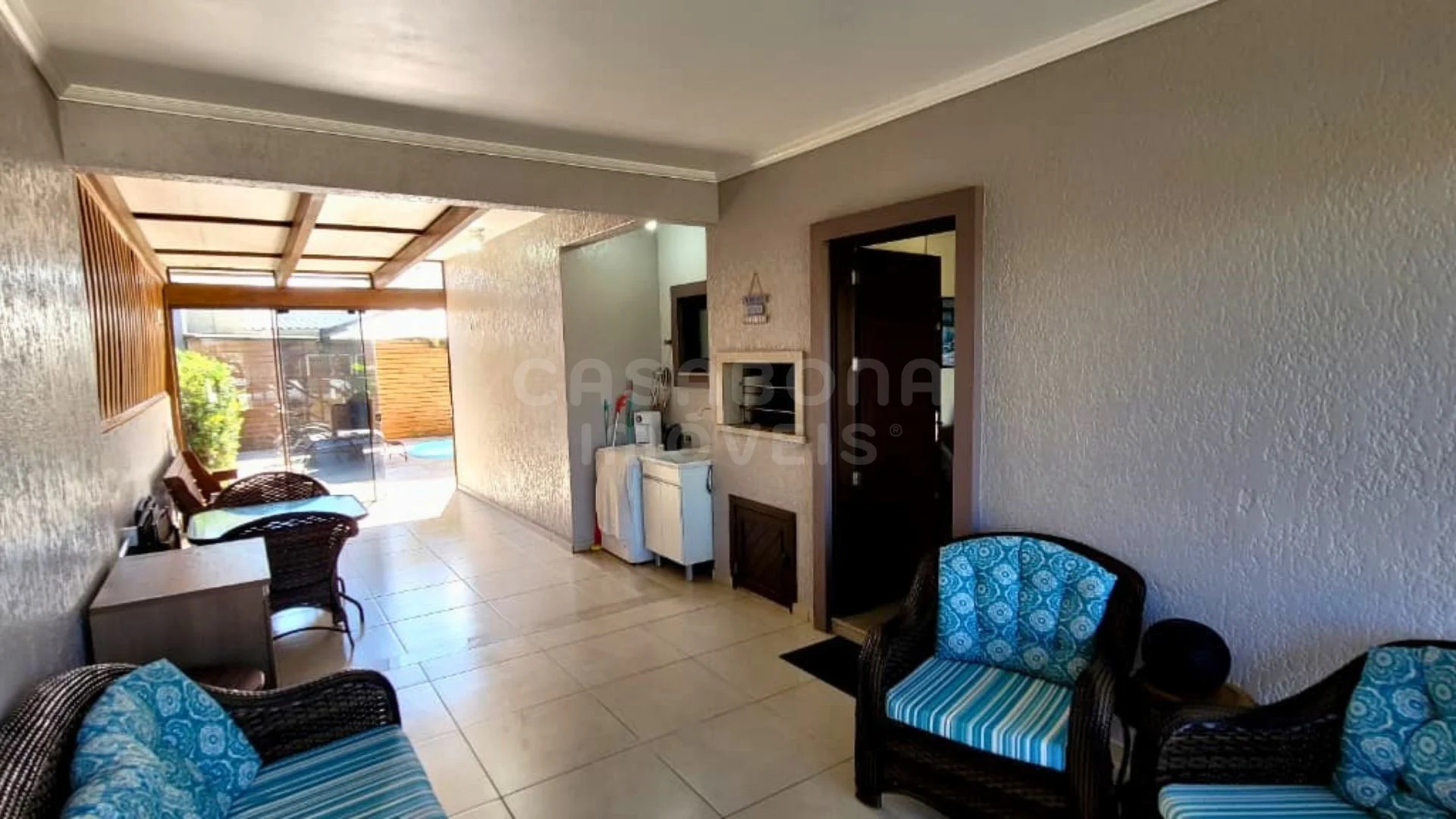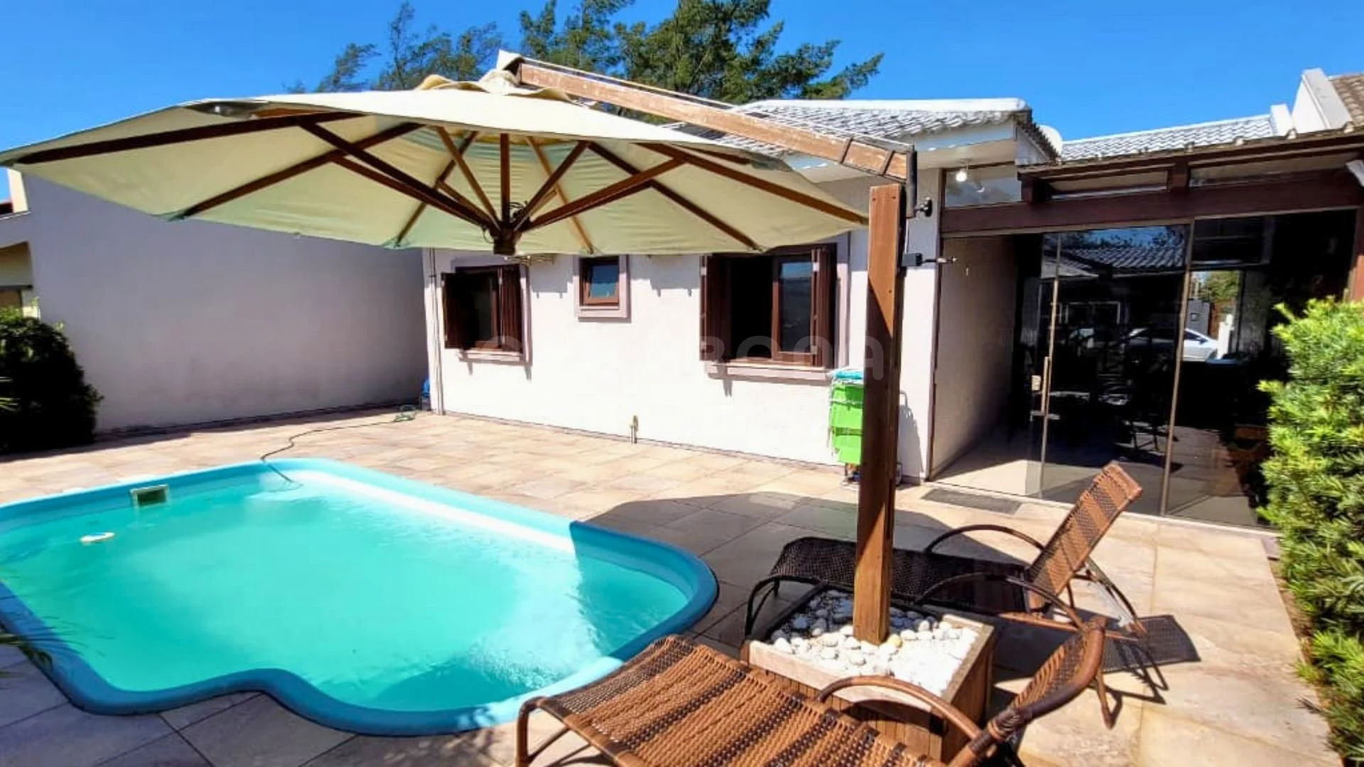 Um dos grandes destaques está na área externa: um verdadeiro espaço de lazer privativo com piscina, perfeito para aproveitar os dias de sol. Além disso, o imóvel conta com um espaço gourmet com churrasqueira, ideal para momentos especiais. A área coberta nos fundos integra perfeitamente o interior ao exterior, criando um ambiente agradável para descanso e convivência. O imóvel também possui câmeras de segurança, garagem e está totalmente mobiliado, pronto para uso imediato.
