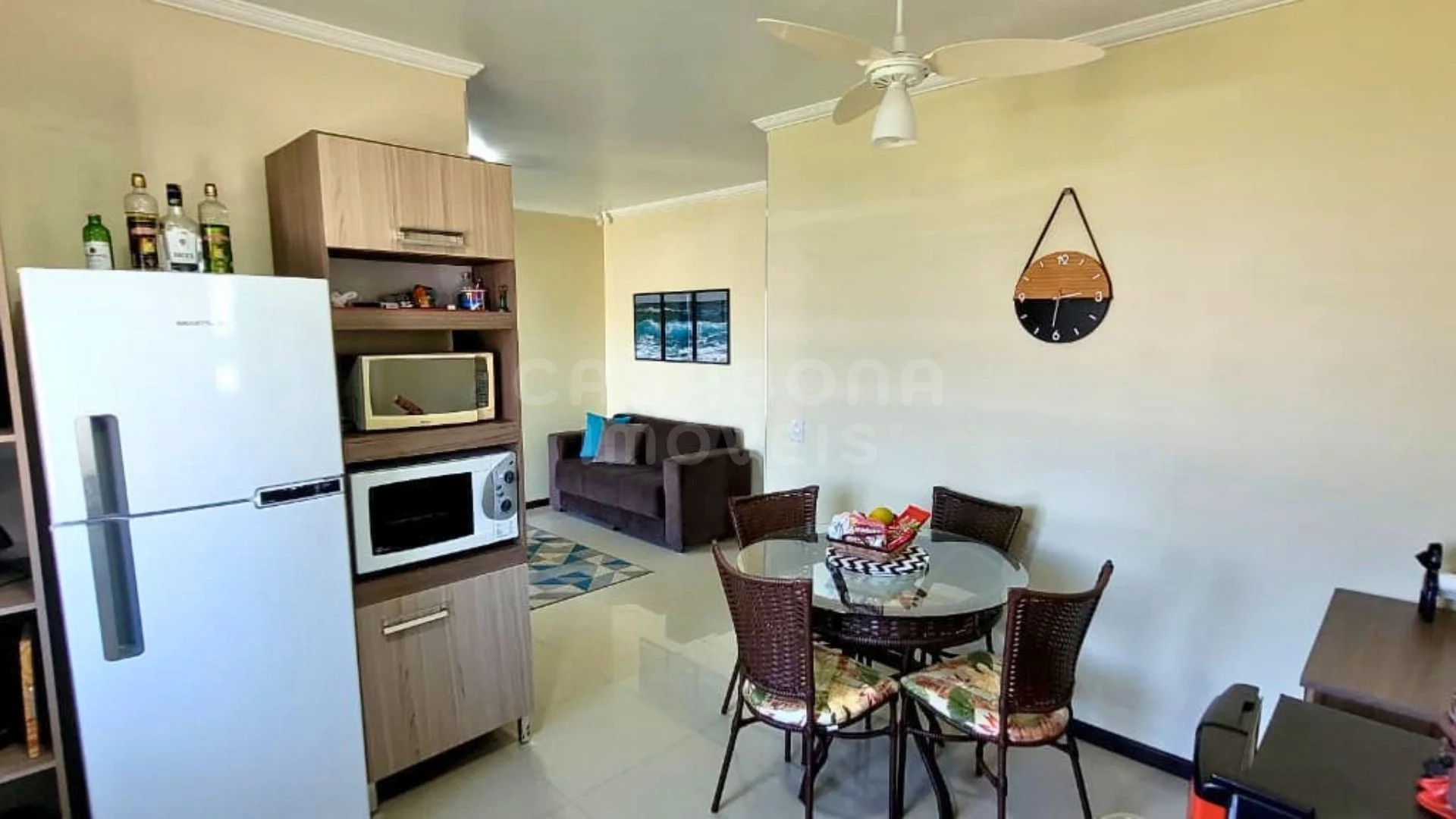 Ao entrar, você encontra ambientes bem distribuídos, com sala de estar e jantar integradas, proporcionando um espaço acolhedor e funcional para reunir família e amigos. A cozinha é prática e já mobiliada, facilitando o dia a dia. Os dormitórios garantem conforto e tranquilidade, contando ainda com ar-condicionado para maior comodidade em todas as estações. O acabamento com piso em porcelanato e a laje em concreto reforçam a qualidade e durabilidade do imóvel.