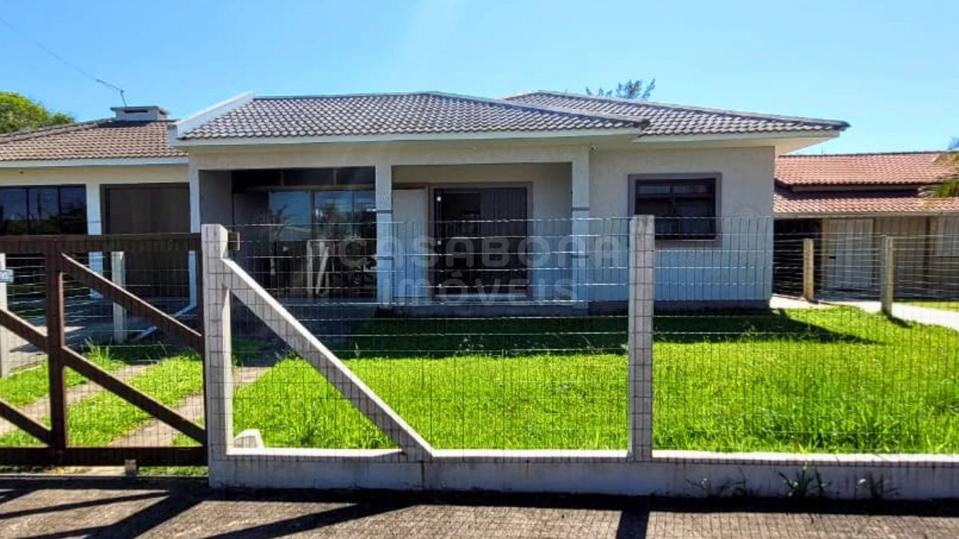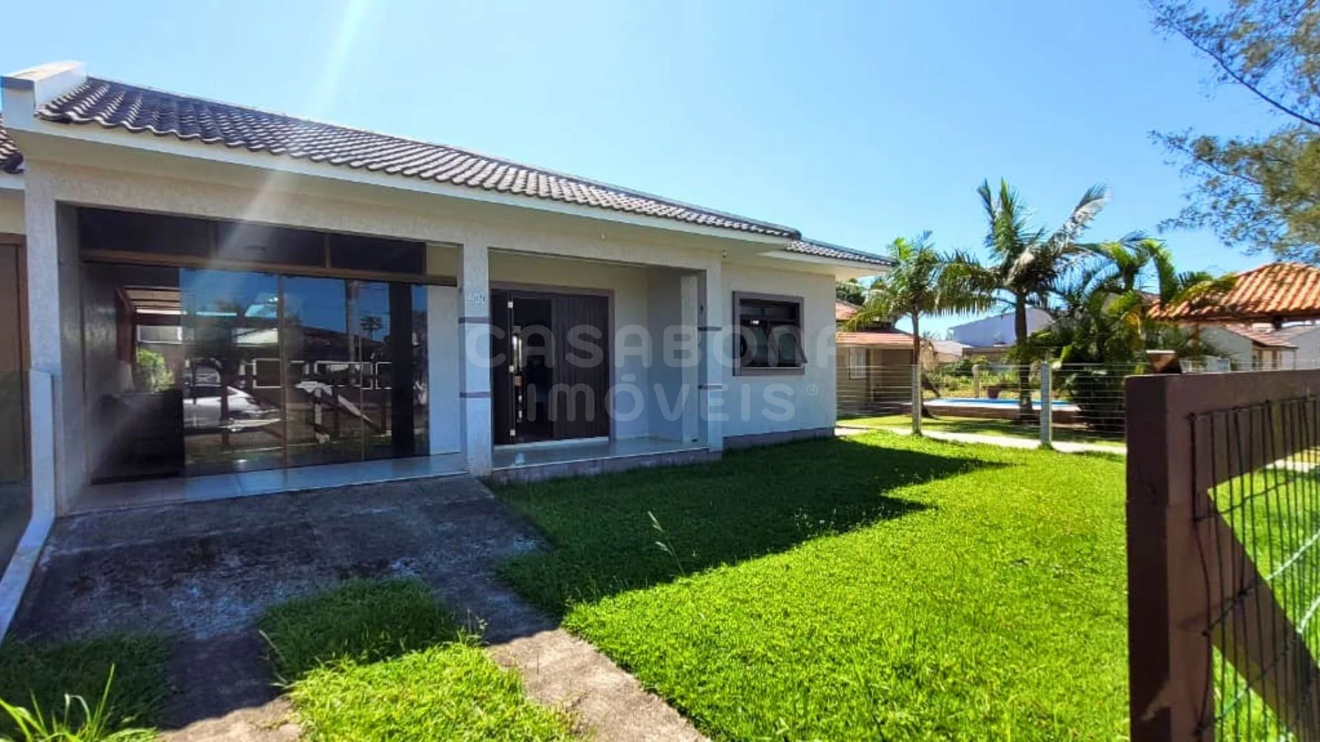 Esta excelente residência é a oportunidade perfeita para quem busca conforto, praticidade e lazer em um só lugar. Logo na chegada, a casa já encanta com seu amplo pátio gramado e fachada moderna, transmitindo aquela sensação de aconchego e bem-estar. Com terreno de 300 m² (12x25) e 99 m² de área construída, o imóvel oferece um excelente aproveitamento de espaço, ideal tanto para moradia quanto para veraneio.