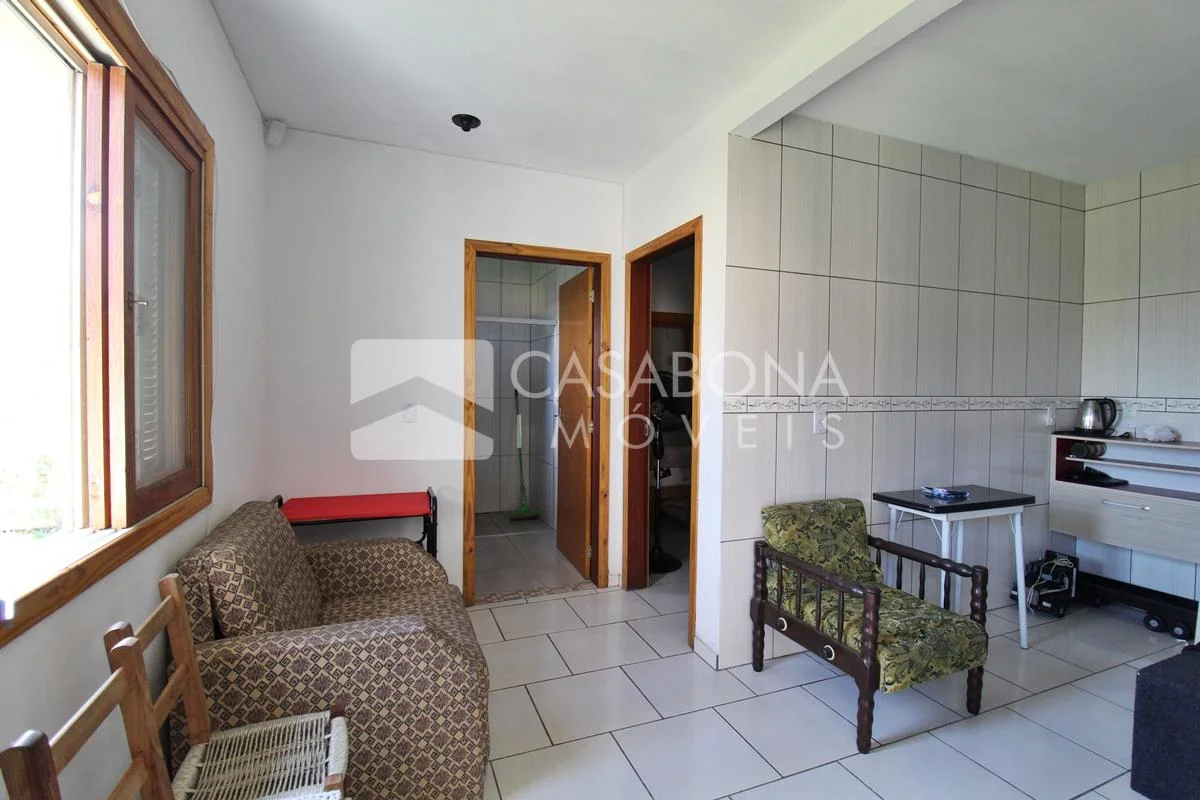 2-Casa aconchegante. Composição: 1 dormitório, sala integrada à cozinha e 1 banheiro.