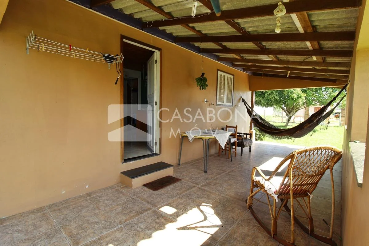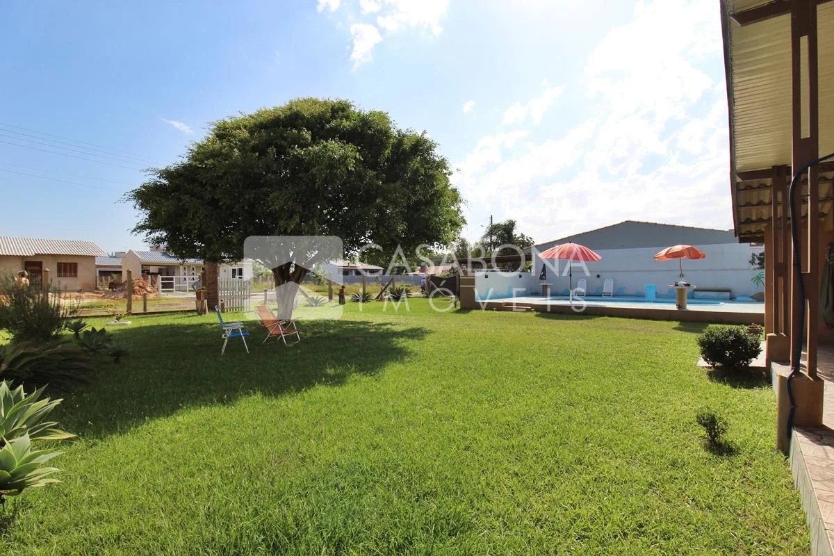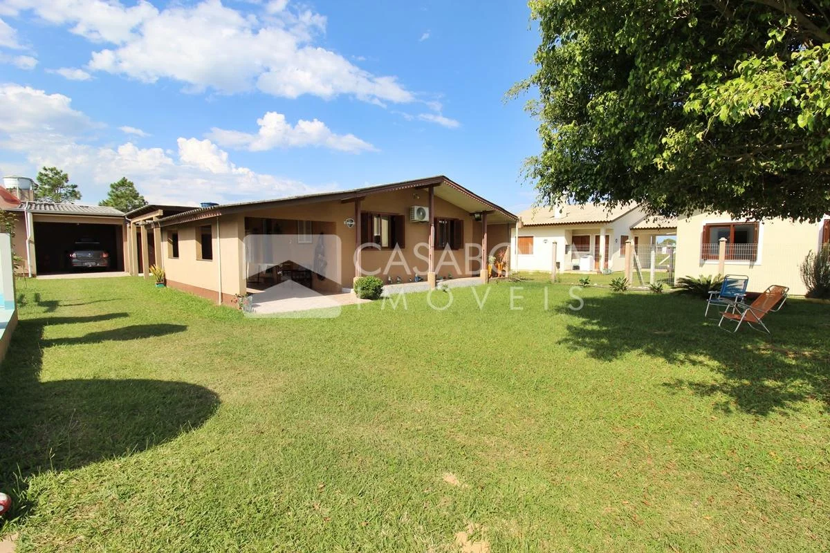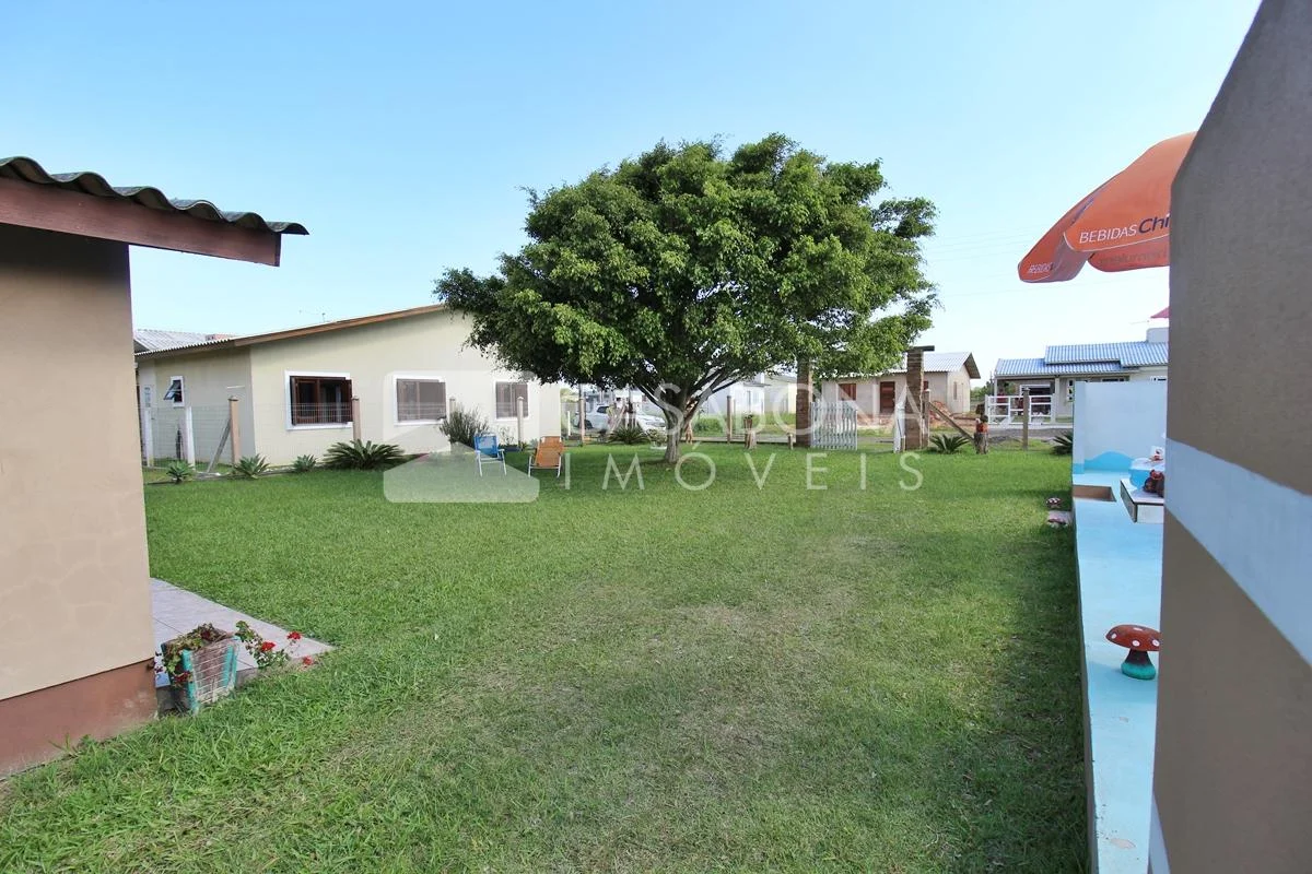 1-Charmosa casa com piscina e pátio. Composição: 2 dormitórios, 1 banheiro, sala de estar, cozinha e garagem para 2 carros com churrasqueira.