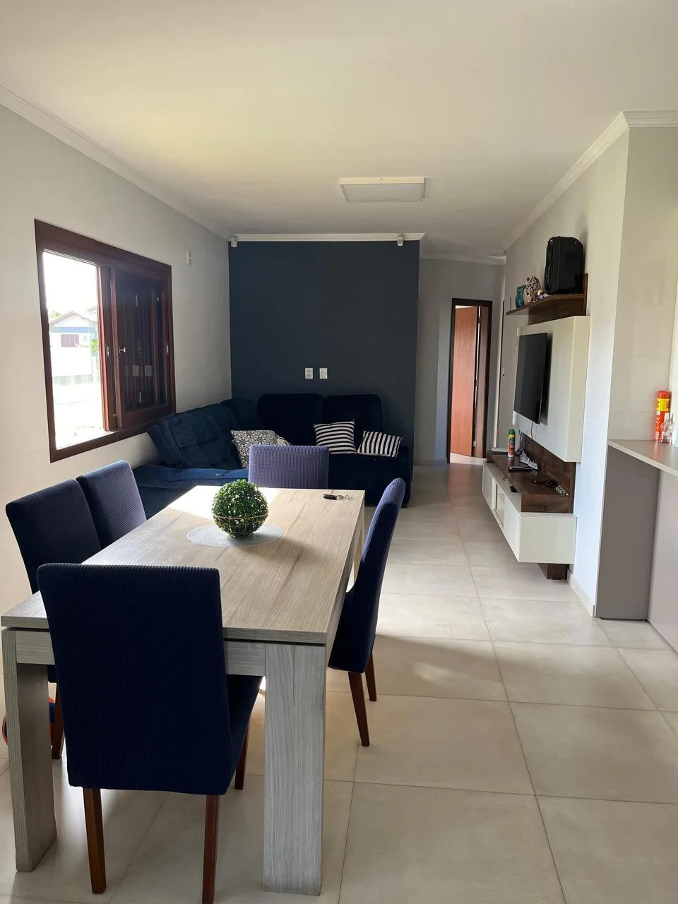 A casa conta com 3 dormitórios, sendo 1 suíte, além de banheiro social, sala de estar e jantar integradas, cozinha funcional e área de serviço. Os ambientes são bem distribuídos, com piso em porcelanato, laje em concreto e excelente padrão construtivo. A posição solar Oeste/Sul garante ótima iluminação natural e ventilação, proporcionando conforto térmico ao longo do dia.