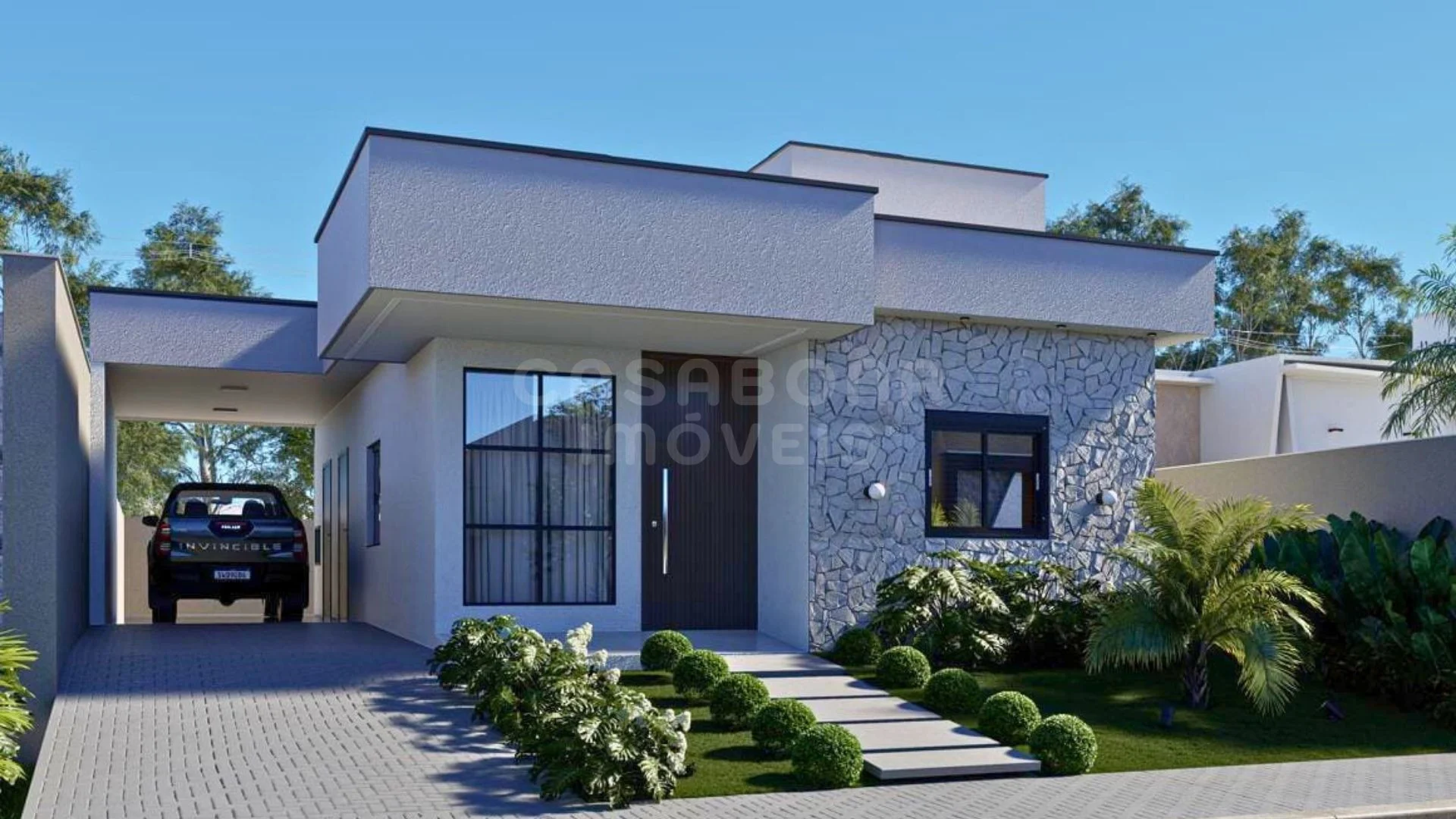 Apresentamos este lindo lançamento em Arroio do Sal, no tranquilo e valorizado bairro São Pedro. Uma residência térrea moderna, com fachada imponente em pedra natural e design contemporâneo, que alia conforto, funcionalidade e bom gosto. Com 100 m² de área construída em um terreno de 300 m², o imóvel conta com 3 dormitórios, sendo 1 suíte espaçosa, além de ambientes integrados e bem iluminados, perfeitos para viver momentos únicos em família.