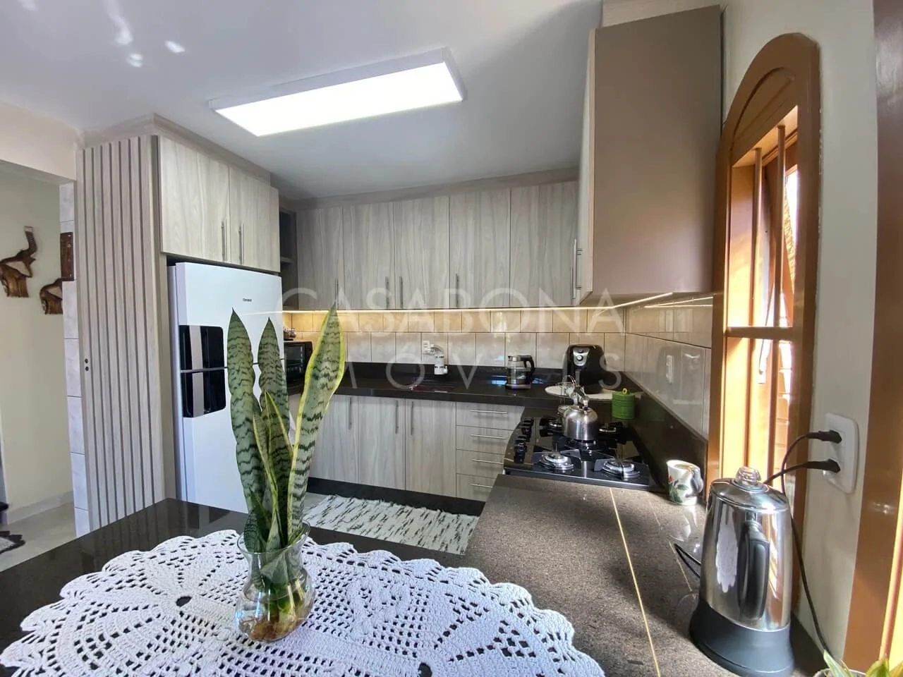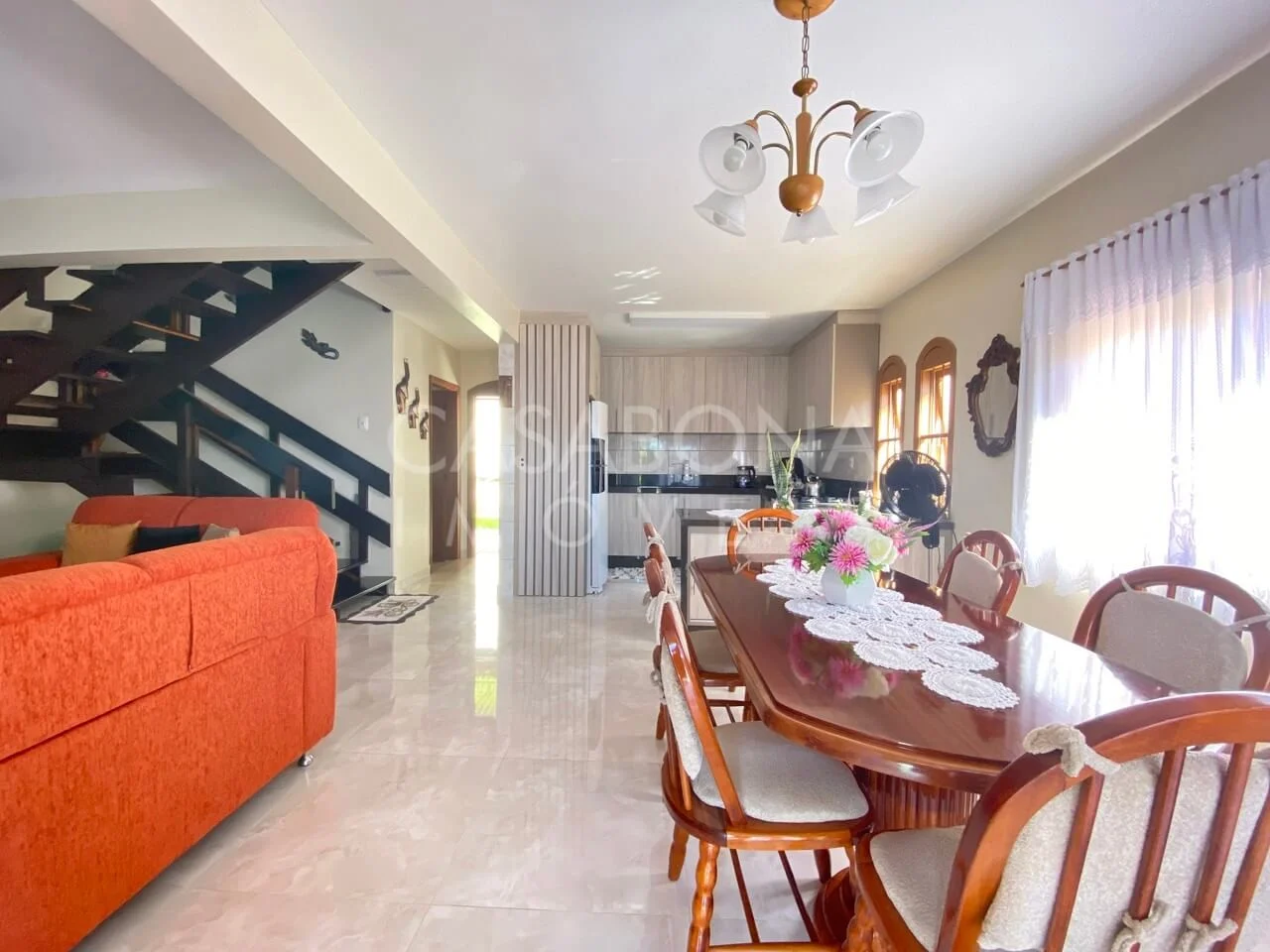 A cozinha é ampla e funcional, integrada à sala de estar/jantar, criando um ambiente acolhedor e perfeito para momentos de convivência.