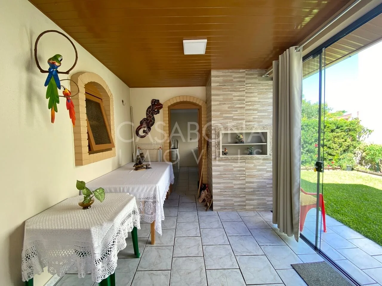 A área de serviço e a churrasqueira completam o espaço, proporcionando praticidade e diversão nos momentos de lazer.