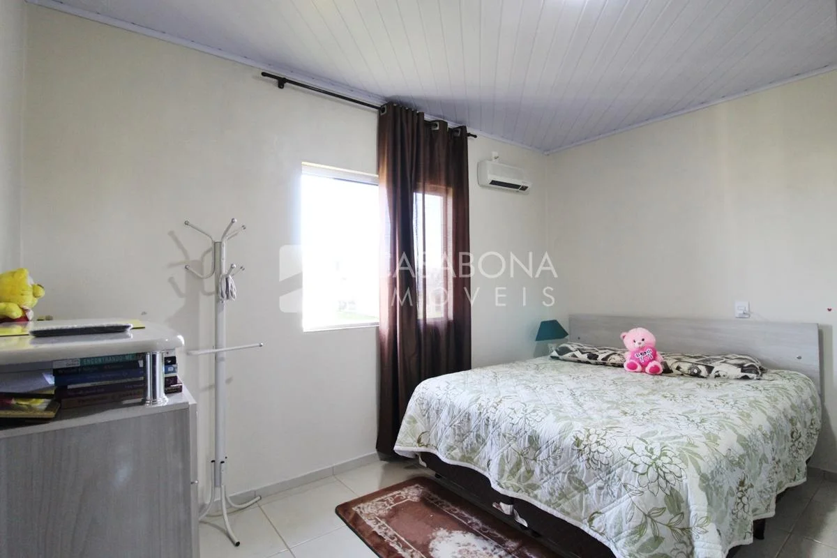 Cada uma das moradias possui 02 dormitórios, 1 banheiro, sala e cozinha conjugada. Além disso, há uma garagem fechada para 1 carro com área de serviço, e o pátio todo gramado oferece um espaço agradável para momentos ao ar livre.