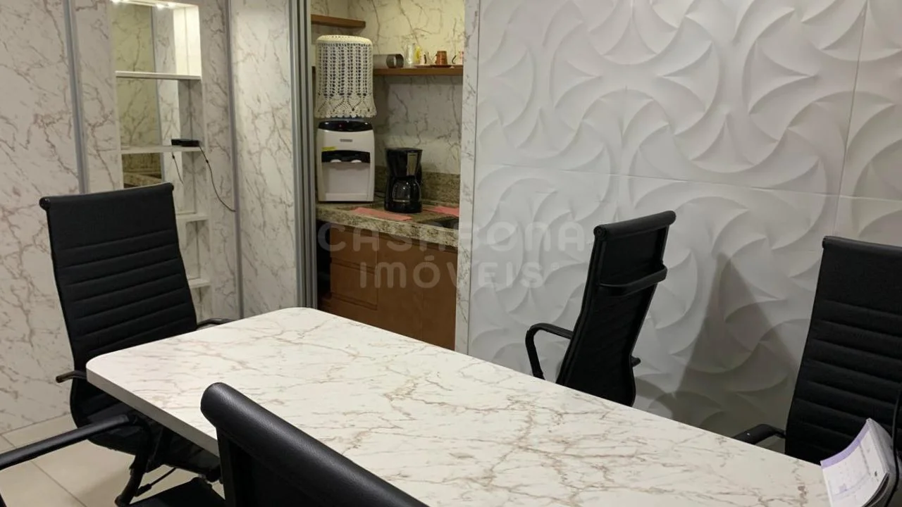 Totalmente mobiliada e equipada, oferece alarme de segurança, ar condicionado e piso em porcelanato. Conta também com uma cozinha funcional e laje em concreto, proporcionando um ambiente profissional moderno e confortável.