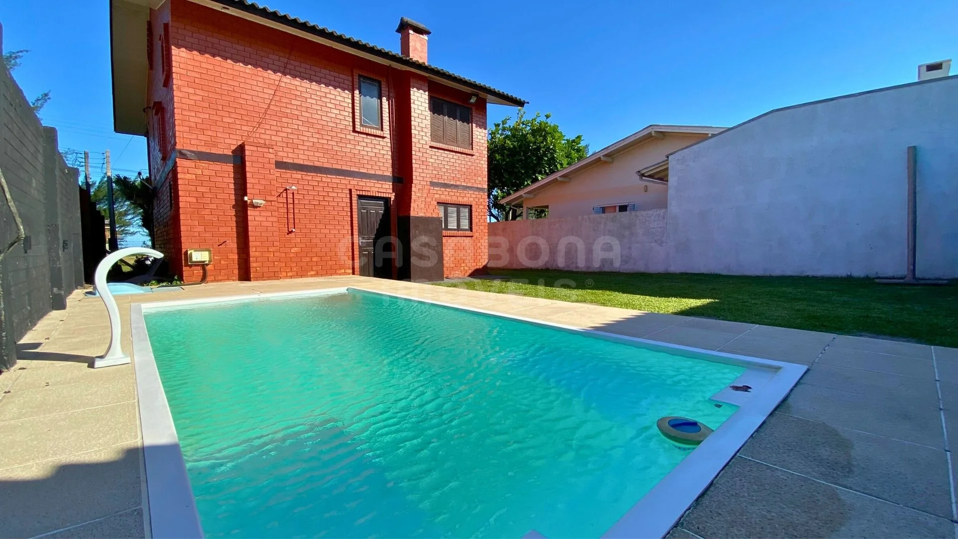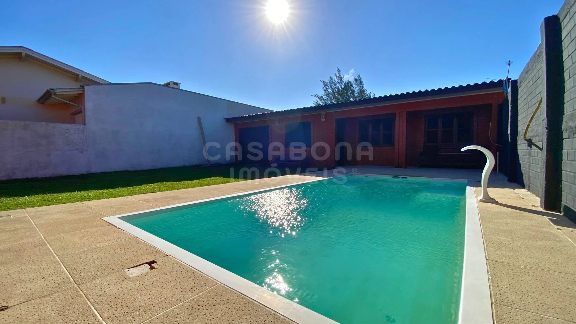 Na área externa, o grande destaque fica por conta da piscina, perfeita para aproveitar os dias de sol, aliada a um quiosque que cria o ambiente ideal para confraternizações, churrascos e momentos de descanso. O pátio é amplo, gramado e cercado, garantindo segurança e espaço para toda a família, inclusive crianças e pets.